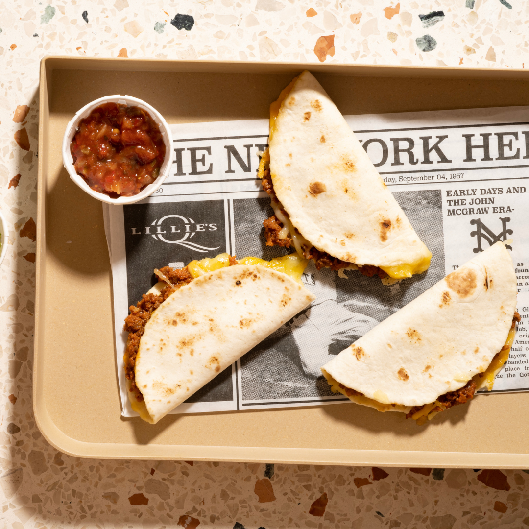 L'une de mes préférées est la quesadilla américaine, qui se compose généralement de petites tortillas de blé de 6 pouces pliées en deux et remplies de sauce au cheddar de Pinata et d'un mélange de fromages MexMix. Ajoutez ensuite une viande tirée comme la garniture pour tacos aux carnitas de porc, de la roquette et de la sauce BBQ américaine comme la Sweet Baby Rays. Faire frire brièvement des deux côtés, de préférence sur une plaque légèrement grasse, puis couper en quelques morceaux. Bon appétit !