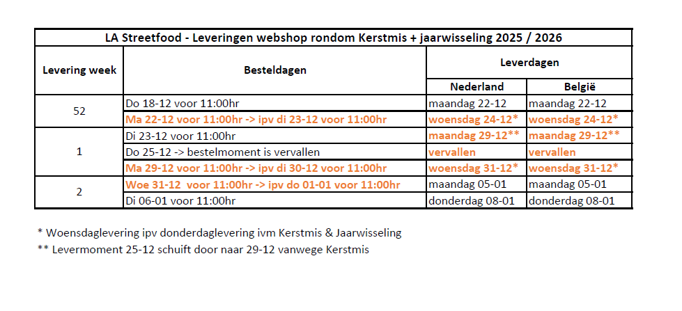 Dit is de reden dat LA Streetfood de mooiste internationale streetfood producten importeert uit de USA, Zuid- en Midden Amerika, Canada en Ierland. Met deze unieke producten onderscheidt uw bedrijf zich nog beter en wordt uw bedrijf nog succesvoller!